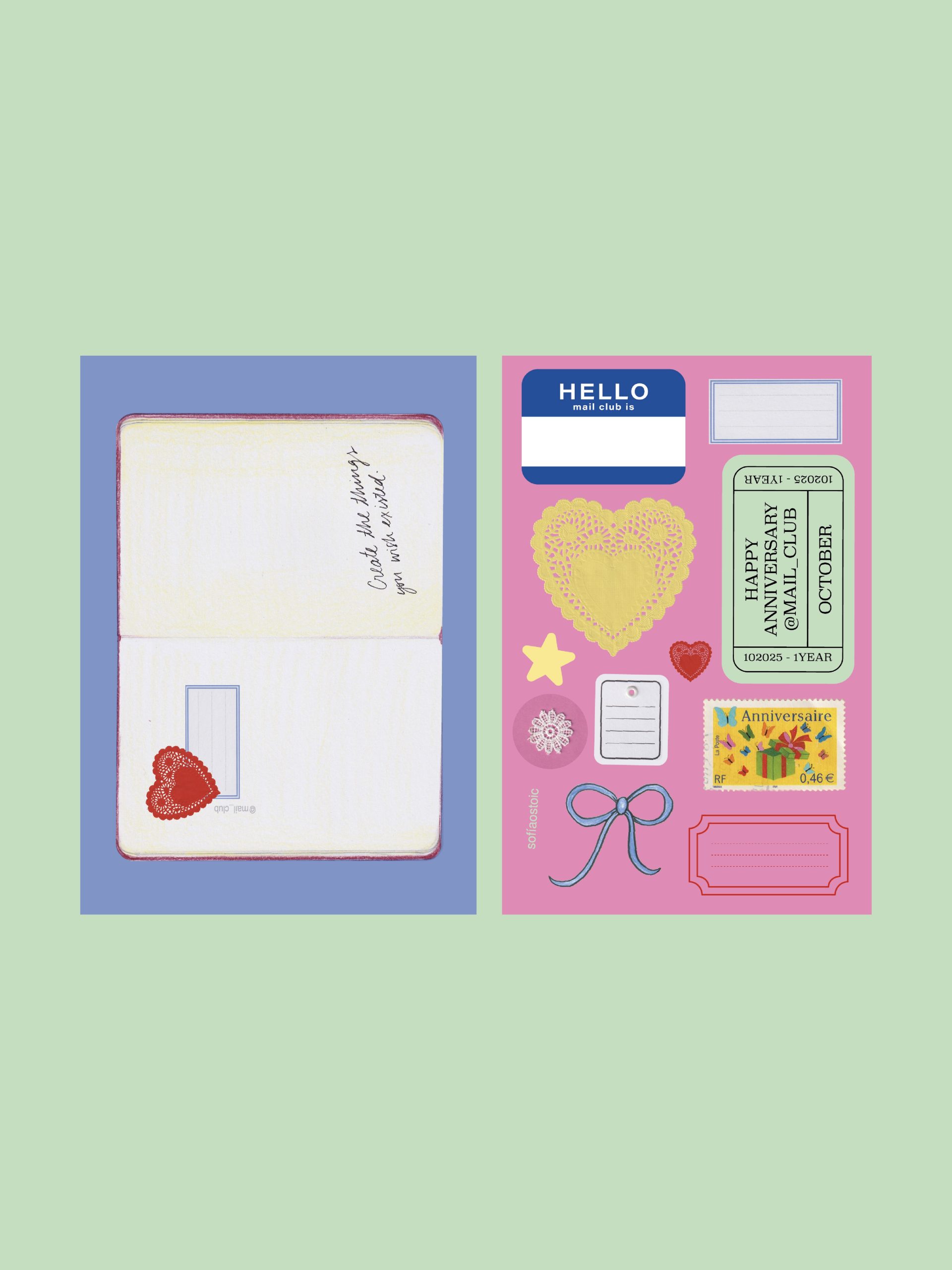 Mail club is a monthly subscription where you receive a postcard, a sticker sheet, a letter and some freebies. Each month has a theme, whether it's the technique used, or the theme itself.I see this as an opportunity for me to experiment and continue the art of correspondence.